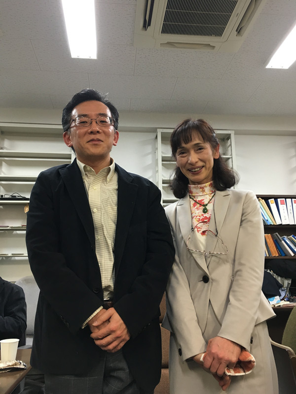 2017年3月17日武上老师送别会上,与石川老师合影。