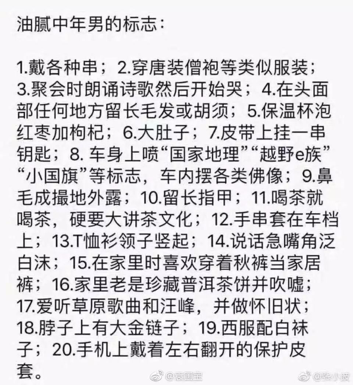 大家纷纷对“中年油腻”进行了各种界定,