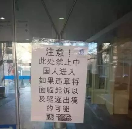 这些海报用A4纸打印,上面用中文写道“此处禁止中国人进入,如果违章将面临起诉以及驱逐出境的可能”,右上角印有学校校徽,落款印有中国学生会标识。