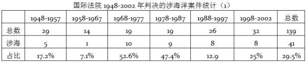 资料来源:根据国际法院判决、咨询意见和命令摘要整理。注:上表中的案件统计时间是以判决时间为准。由于国际法院对临时保全、行政复核、实质审查、程序审查、咨询、撤诉、初步意见书等均作为一个案件,所以1948至2002年的案件数量是139个。