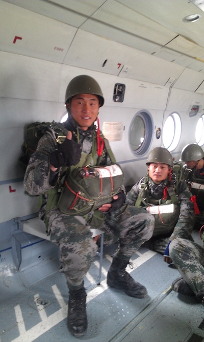 “这是跳伞中容易出现的特情。”有着2000多次跳伞经历的二级军士长王国林说,“只要跟着旋转回过劲,就能排除特情。”