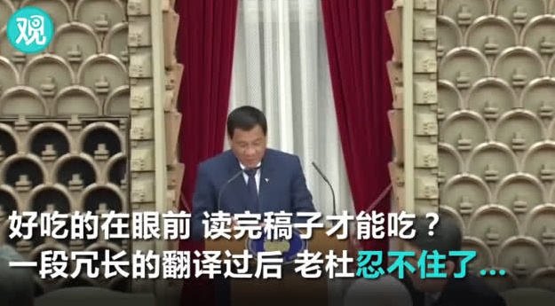 原标题:杜特尔特访日演讲草草收尾:撰稿人太能写 我很饿