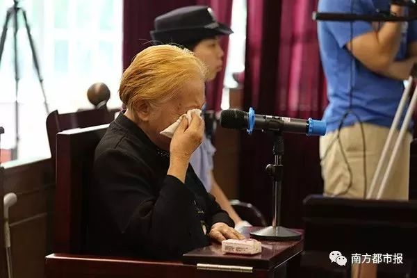 83岁的黄某某出庭受审,痛苦落泪。 通讯员图