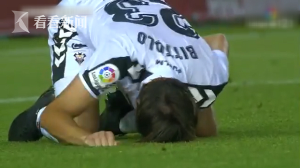 西班牙阿尔巴塞特足球队(Albacete)的阿根廷籍后卫Mariano Bittolo日前在乙级足球联赛中被队友意外踢到下体,当场疼到在地上打滚,脸朝下跪在地上疯狂用手捶草坪,表情痛苦。送医诊断后需缝10针。