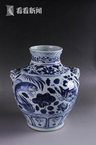 其他六件元、明、清官窑器,曾出现在去年杭州G20峰会的核心区主会场中。其中,元代的代表瓷器为元青花鱼藻纹铺首罐。元青花是当时中国对外贸易的主要商品,而青白相映的青花瓷特别适应欧亚大陆人士的审美情趣,故深受他们的喜爱。该罐腹部主题纹饰为鱼藻纹,鱼穿梭于莲、藻之间与“荷叶莲花浮萍”正是“和平清廉富贵”的寓意。