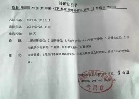 谁知第二天早晨,周女士就感觉肚子很痛。然后去医院检查,医生说她胰腺断了,要立即手术!甚至一度下达了病危通知书。