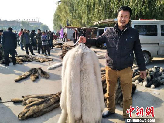 商户在展示白色貉子皮 王天译 摄