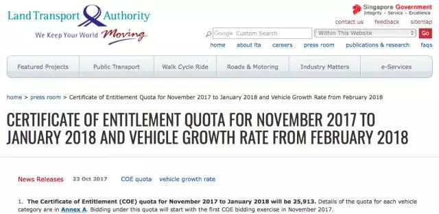 10月23日,新加坡陆路交通管理局(the Land Transport Authority)在其网站刊登声明表示:目前新加坡已有12%的土地用于建造公路,这已经大大超出了寻常国家的用地占比。“考虑到土地限制和发展需要,将进一步扩大道路网络的范围有限。”
