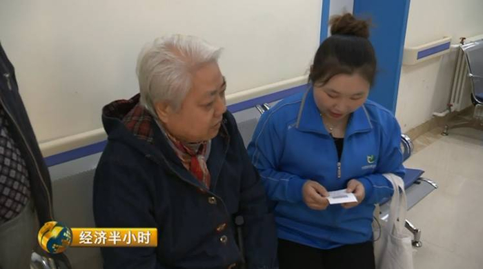 了解到张奶奶腿脚不方便,居家服务人员还带了一个轮椅。到了社区医院后,两位服务人员一个跑前跑后的排队、挂号、缴费、 拿药。另一个则是寸步不离的照看着张奶奶。