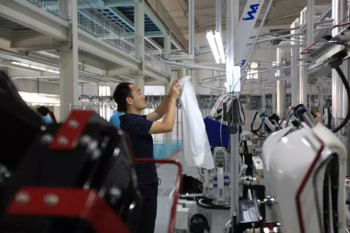 据其负责人介绍,公司今年6月份开始独立运营,目前已经投产了4000余万元,一期设备已经全部投产使用,这些设备中包括洗涤、烘干、熨烫等一系列的一体化自动洗衣设备,现已全面开工。