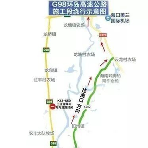 10月31日,海口交警发布出行提示,因G98环岛高速公路建设车辆超限不停车称重检测与非现场执法系统的需要,将于近期分批对G98环岛高速公路部分路段进行施工,为确保施工期间的行车安全,海口市公安局交通警察支队将于11月2日至11月8日,对G98环岛高速公路K13+650、K587+400实施临时交通管制。