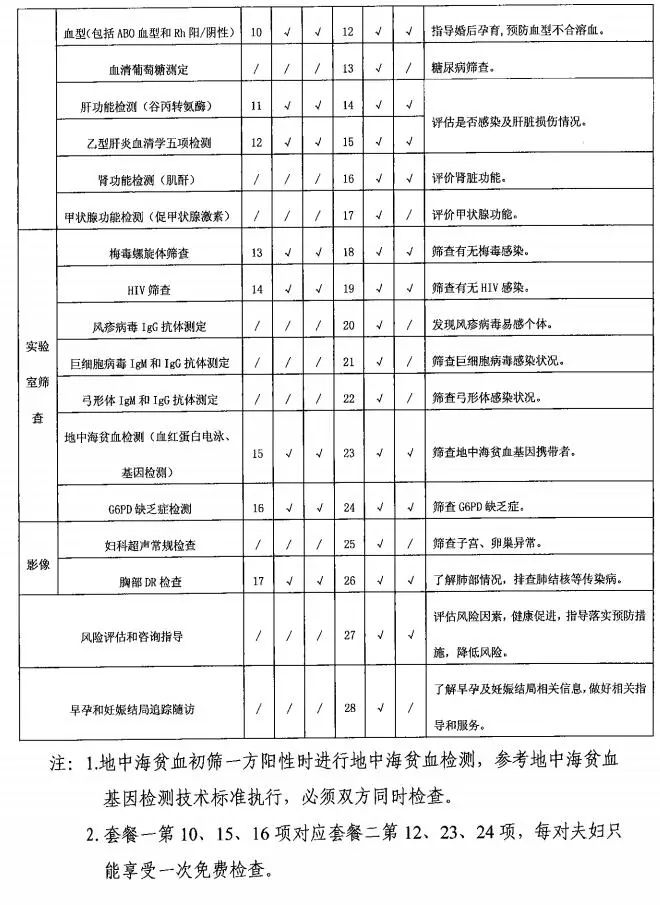 在套餐一已经检查过ABO血型、G6PD检测、地中海贫血检测项目的,在套餐二不再重复检测。