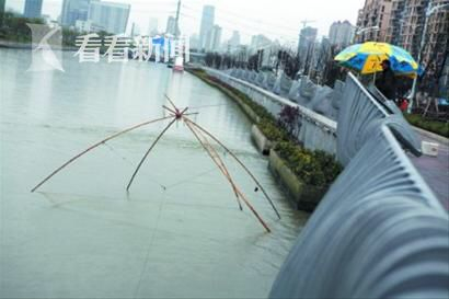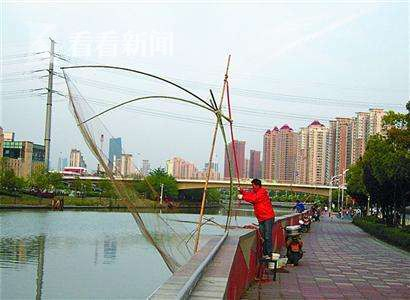 这样捕鱼的场景,在苏州河的乍浦路桥附近,长宁路苏州河沿岸,也几乎天天存在。只要不是刮风下雨,总能看到一些人拿着长长的渔网,站在河堤上张网捕鱼。周边市民说,这两年苏州河以及支流水质改善,引来不少放生者,于是捕鱼者也多了起来。