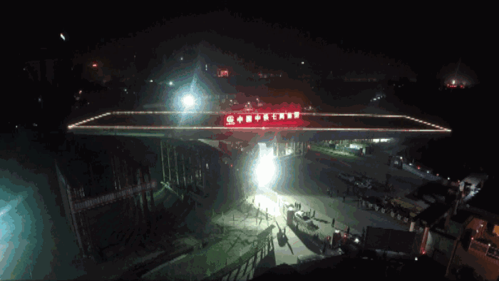 10月27日零点40分,这一路段交通中断,转体开始:长119.35米、重3350吨的钢箱梁,顺时针旋转100度,与高架主体完成精准对接。凌晨2点30分,交通恢复。到第二天下午,相邻一段桥体的顶推工程也顺利完成。