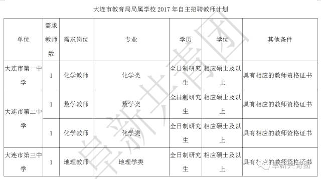 大连市教育局局属学校自主招聘27名毕业生