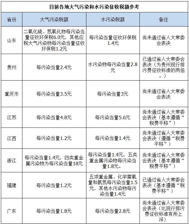 环保税法列出了环保税征税税目及税额,也明确大气和水污染物的税额由省级政府确定,报经省级人大常委会决定。