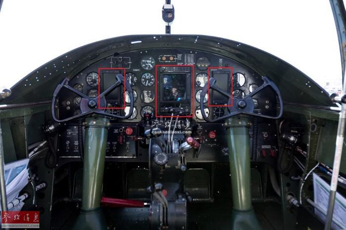 图为“永远忠诚”号的驾驶舱特写,可见不仅保养状况良好,而且还加装了现代航电设备,例如红框标出的电子显示屏。二战操纵杆+现代航电的混搭风也是颇有特点。