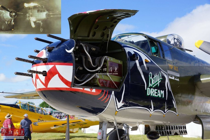 绰号“贝蒂之梦”的B-25J炮艇机特色涂装特写,“血盆大口”配上8挺重机枪颇有威慑力。