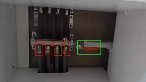 3、图中绿线框起来的是出水管总阀,红线框起来的是分水管的小水阀。正常放水的状态是总阀与出水管平行,小水阀与出水管垂直。
