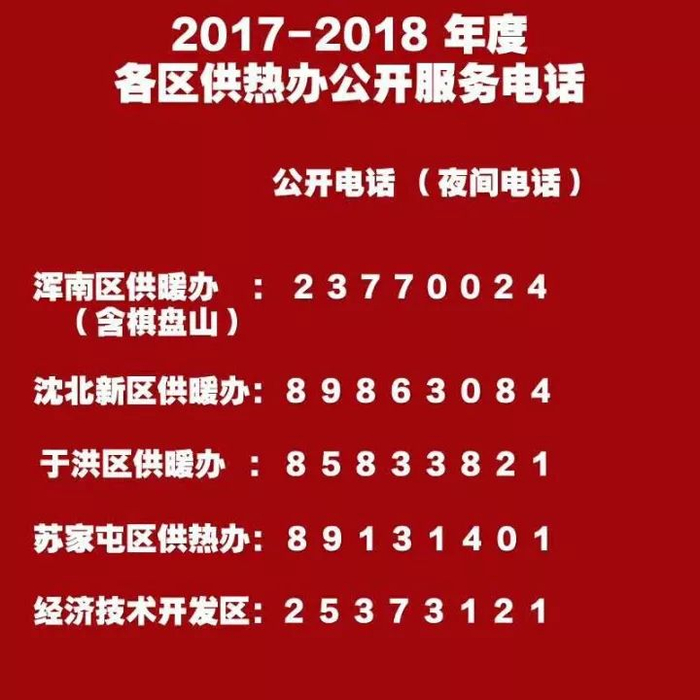 各区供热办公开服务电话