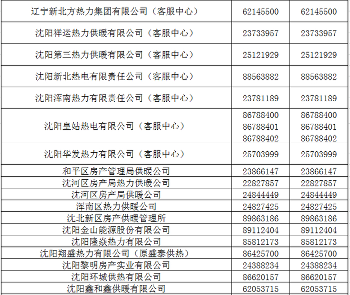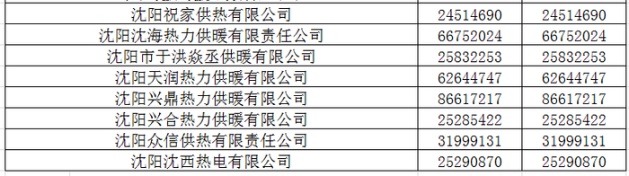 供热单位公开服务电话
