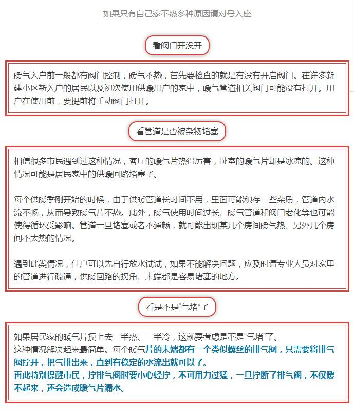 很多反映暖气不热的住户