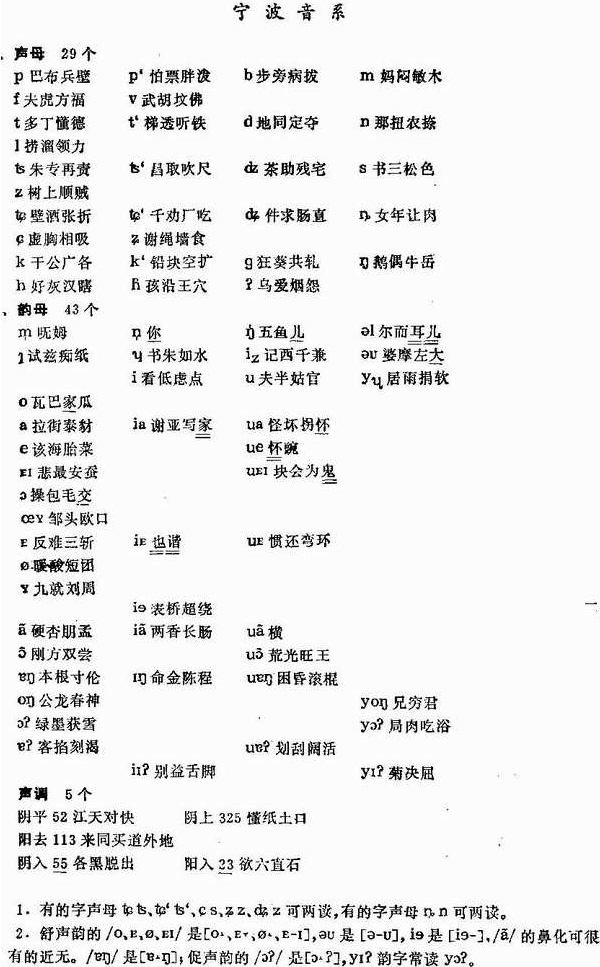 1992年《当代吴语研究》中的宁波话,声调只剩五个。