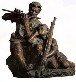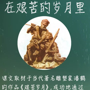 该课文取材于我国当代著名雕塑家潘鹤的作品《艰苦岁月》,生动塑造了艰苦斗争环境中的红军战士信念坚定,开朗豁达的光辉形象,通过老战士吹笛子,小战士偎依身旁倾听的造型、体现出艰苦年代的革命乐观主义精神。
