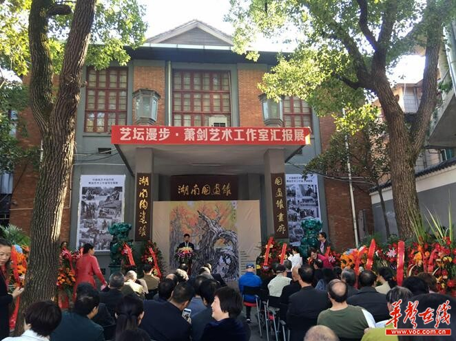 华声在线11月1日讯(记者 刘玉锋)金秋时节,艺坛漫步。今天下午,“文化部中国画艺术创作院萧剑艺术工作室汇报展”经过一年的精心创作,在湖南国画馆开幕。湖南省委宣传部副巡视员刘学,湖南省文化厅副厅长肖凌之,湖南省作家协会常务副主席龚爱林,湖南日报社社委、华声在线股份有限公司总裁龚定名等出席开幕式。湖南省文化界、画界、收藏界等近百名领导嘉宾齐聚一堂,共话艺术。本次展览持续至11月7日,并对公众免费开放。