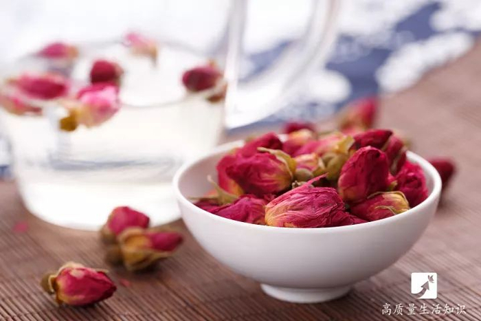 取半杯玫瑰花放入一杯蒸馏水中浸泡一个晚上,取玫瑰茶汁,加入半勺伏特加酒,早上起床用之漱口。