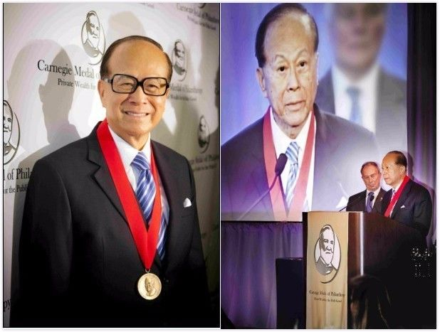 卡内基慈善奖几年前也曾经颁给过全球华人首富香港企业家李嘉诚,李嘉诚为此亲自飞到纽约,激动地上台发表获奖感言(见下图)。迄今为止只有翟美卿和李嘉诚两位华人获得这项殊荣。