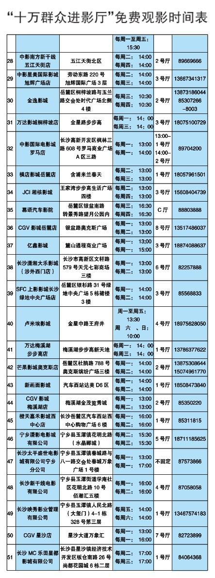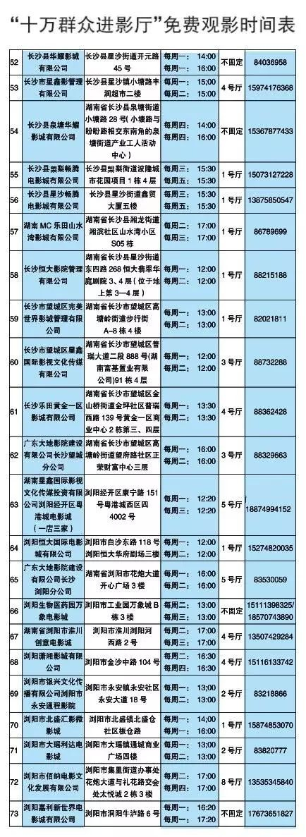 11月1日至30日,市文广新局联合长沙市国安网络有限公司,活动期间,市文广新局联合长沙市国安网络有限公司,采取“影院让利、政府补贴、十元观影”的方式让观众优惠获取同步商业片电影票。