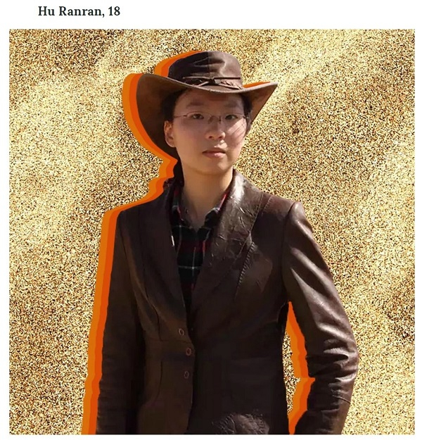 关于胡然然的上榜理由,坎贝尔写到:“为了拍摄这部电影,没有预算的胡然然在她就读的人大附中集结了37名学生一同参与。他们自行搭设场景、制作服装,并在学校里完成了大多数拍摄。随之而来的争议评论为胡然然赢得了前往加州大学进修学习的机会,并且在中国这个人口最多的国家重新燃起了关于跨性别议题的讨论。‘了解LGBTQ人群的故事,是减少歧视的开始。’胡然然说。”
