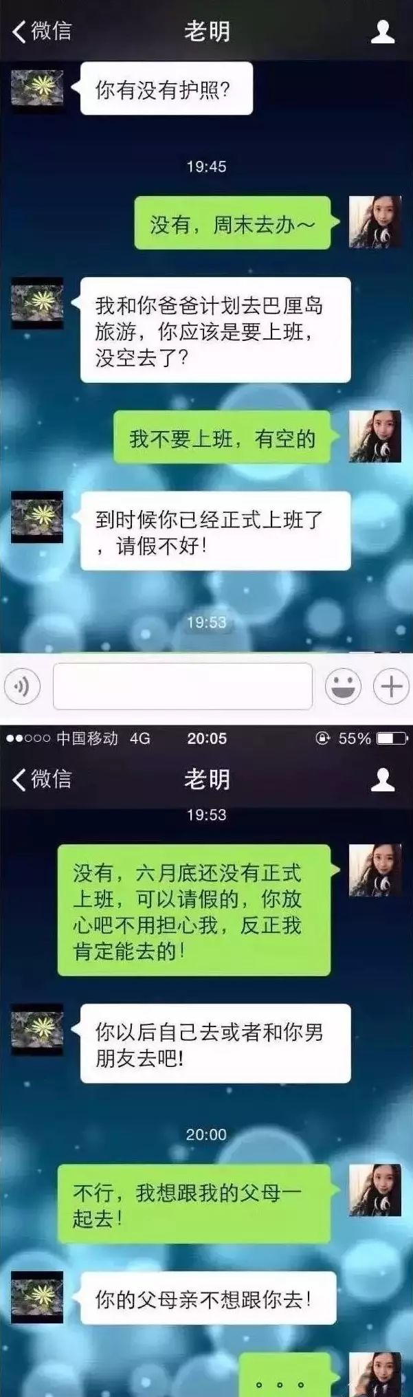 “我和你爸去旅行了,