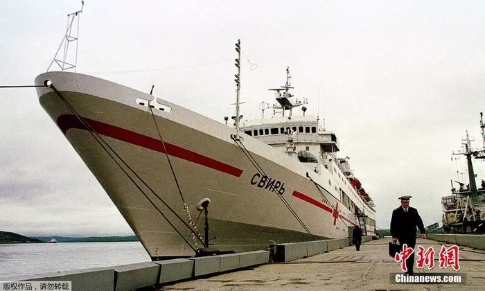 俄罗斯320型医院船“额尔齐斯河”号于1988年11月25日开工,1989年7月6日下水,1990年7月31日服役。图为2000年8月18日,俄罗斯320型医院船“额尔齐斯河”号停靠在母港。