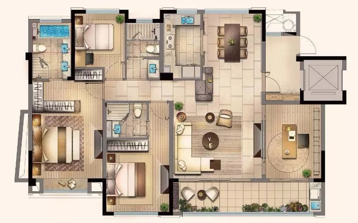 四房两厅两卫的设计,无论是二胎家庭,还是三代同堂,全家其乐融融。