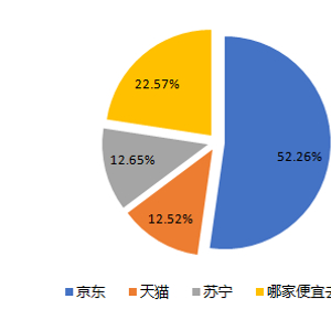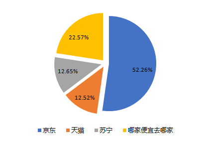 在4个选项中,仅有22.57%的消费者选择“哪家便宜去哪家”,而有超过一半的消费者选择了京东家电。
