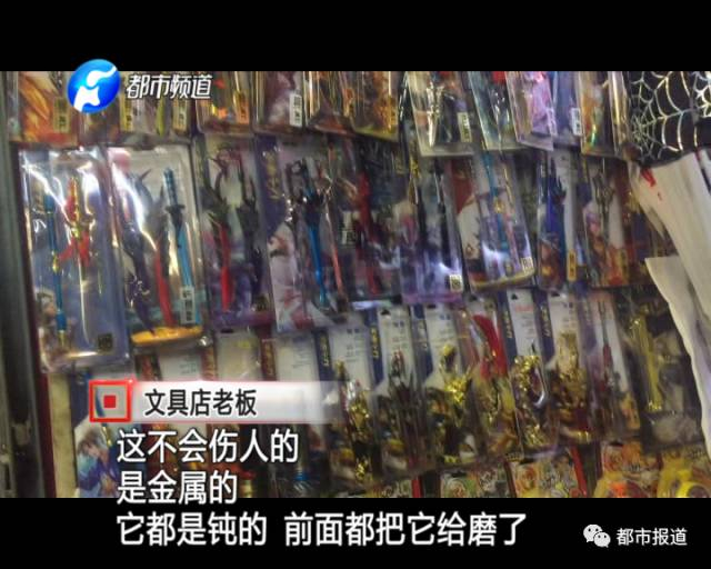 这些刀枪剑戟的模型,价钱从十几元到五六十元不等,因为造型酷炫,形状逼真,有的还有配套的刀鞘皮套,也是最近在学生中流行的爆款玩具。