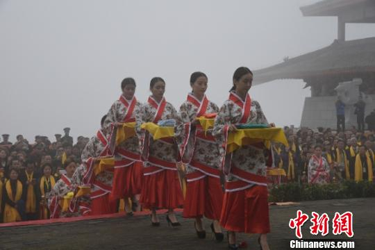 中新网绵阳11月3日电 (杨勇 董媛媛)11月3日,由中国先秦史学会、中国伦理学会、中华嫘祖文化促进会、四川省嫘祖文化促进会主办,盐亭县嫘祖文化开发研究会承办的2017(丁酉)年中国(盐亭)嫘祖故里酬蚕节民间祭祖仪式在四川省绵阳市盐亭县嫘祖陵祭祀广场举行。400余名海内外华夏儿女齐聚嫘祖陵,拜谒华夏母亲,祈福中华民族伟大复兴。