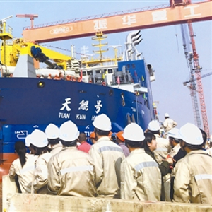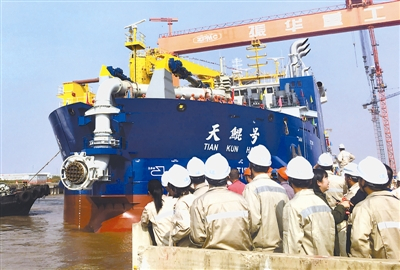 从被称为“造岛神器”的“天鲸号”,到目前亚洲最大最先进的“天鲲号”,中国自航绞吸挖泥船的自主研制实力再一次让世人惊叹。作为世界疏浚大国,中国的疏浚船舶正经历着从无到有、从小到大、从大到强的“鲲化”,为实现制造强国和海洋强国中国梦再添羽翼。 本报记者 孙喜保 摄