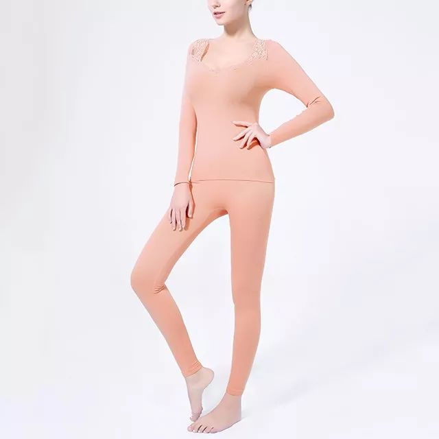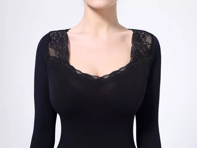 这款蕾丝低领款套装的面料,除了有德绒+美国高弹力莱卡,还加入了日本进口的莫代尔面料。