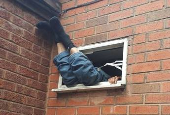 >>>>>>英国伯明翰一家炸鸡店,一名光着上身,只穿着牛仔裤和袜子的男子被警察从抽油烟机通风口救出。获救时,他双腿悬在墙外,上半身在屋内,卡在通风口已经7个小时。警察特意为他拍照留念。原来这名男子试图从通风口翻入炸鸡店内偷窃,不料风口太窄,他被卡住无法动弹.....######这就尴尬了!