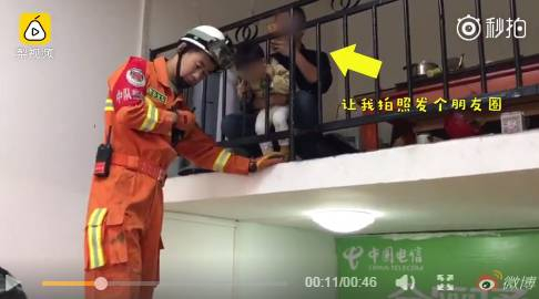 >>>>>>福建一4岁孩子在阁楼玩耍,头被护栏卡住,消防员赶来后将栏杆破拆救出孩子,亲爹在旁不忘拍照发朋友圈。######“亲生”这个词再一次被黑!