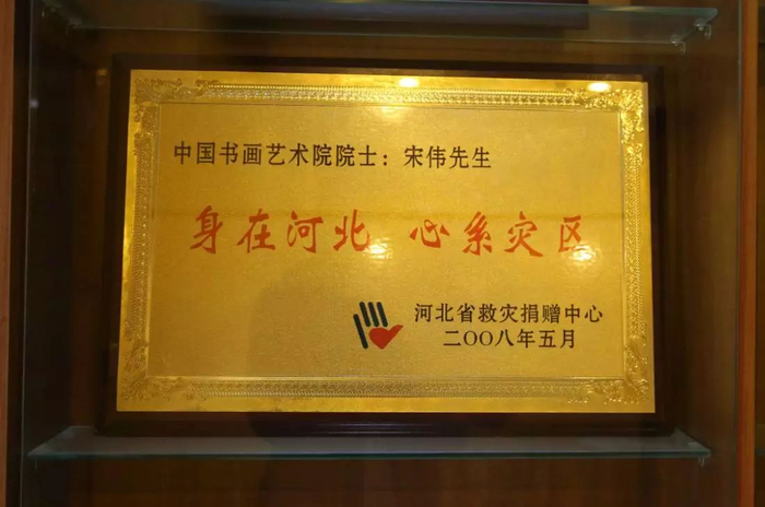 同时宋伟一直在为慈善事业贡献着自己的力量,2008年5月12日汶川地震发生后,作为河北安徽商会副会长的宋伟立即发起书法义卖募捐活动。2010年4月14日青海玉树地震后,在上海举办全国地暖行业活动时,宋伟现场策划十二幅书法作品义卖,当时即拍卖了12.6万元,这笔钱全部捐给了玉树灾区。宋伟认为自己做的其实微不足道,他认为“慈善”这两个字分开就是“慈悲善良”,心中要有感恩的心,我们每个人做善事其实不会花很多的财力物力,你只要去做就行了。