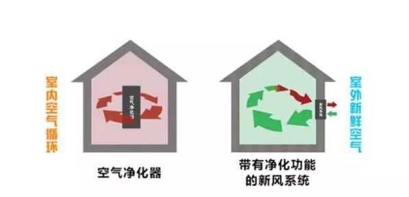 谈到选择新风系统的原因,宋伟说:“人们工作在写字楼里,下班在家里,长期处于密闭环境,就像罐头一样,密封着,不开窗户、不通风。可空气净化器使用时必须将门窗紧紧的关起来,使得室外的新鲜空气不能进入室内,当空气净化器滤芯饱和后入未及时更换,滤芯上的有害物质会挥发,对室内产生二次污染。然而新风系统工作时,新风换气机将室外新鲜空气经过3级过滤和净化处理,再通过管道输送到室内,同时将室内污浊的空气排出室外,实现室内室外空气置换的过程,能更好的达到净化空气的目的。”
