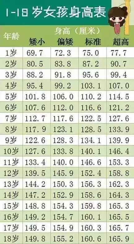 【对照】1—18岁男女孩最新身高标准表!你家孩子达标了吗?
