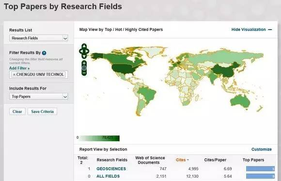 根据美国汤森路透ESI数据库,地球科学(GEOSCIENCES)学科首次进入ESI全球排名前1%,成为西南五省(区、市)首个拥有地球科学世界一流学科的高校。