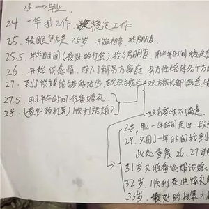 在网络上热传的是一张用黑色签字笔手写的时间表,时间表列出了一个人从23岁大学毕业开始计划的感情变化时间。