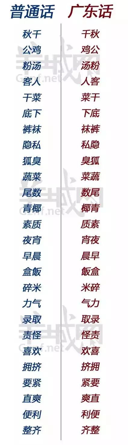 双宾语的句式,粤语语序正好同普通话颠倒。