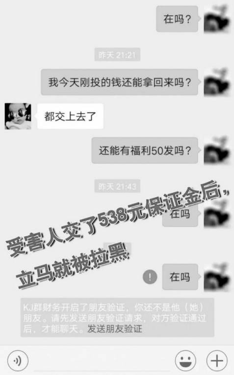 可让刘女士没想到的是,当她想要把截图回传给客服索要佣金时,发现客服把她拉入黑名单了。微信再也无法联系上客服,而且她也找不到任何联系该公众号的方式。